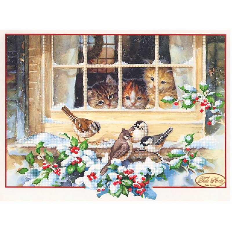 Kittens, size 32 x 24 cm, kit contains 5,111 beads in 25 colours, needle, thread and canvas. Hand made bead art is crafted to perfection to allow you to create a unique work of art. The canvas is marked with the position and colour of individual beads, and the picture is created by sewing beads onto the canvas using a half cross stitch method. Beads are sourced directly from Preciosa.