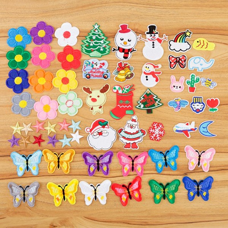 Multi pack of 60 computer sewn, embroidery appliqué patches.