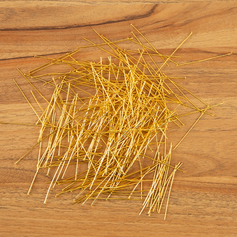 A great stash pack of 250 gold tone headpins. The headpins are 50mm in length.